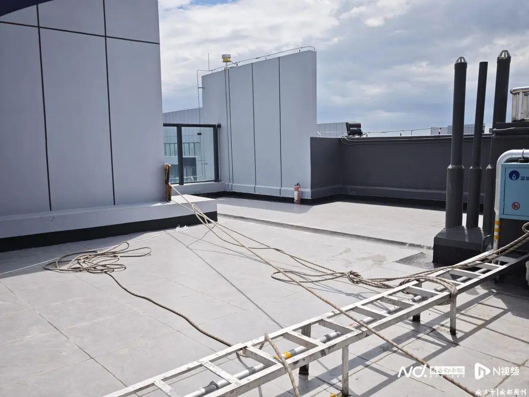 事发楼栋天台正在维修作业。